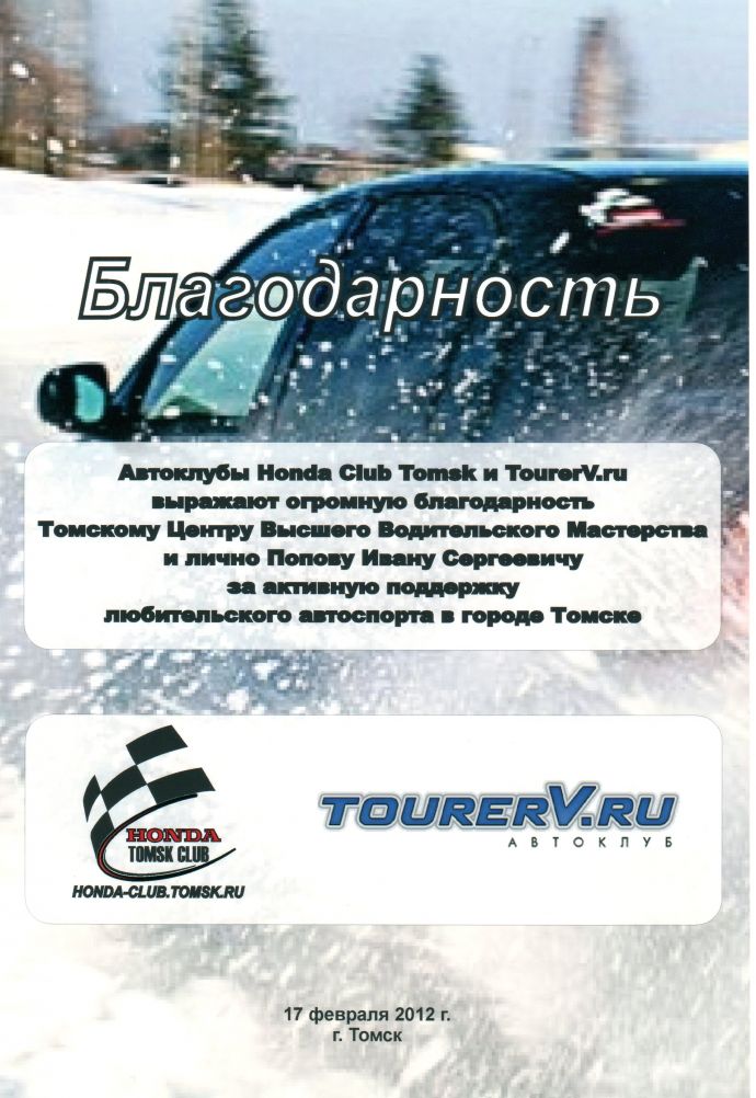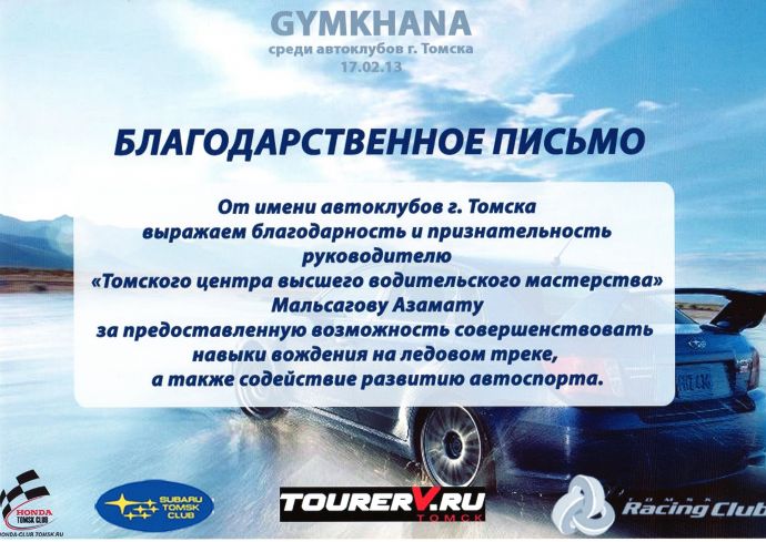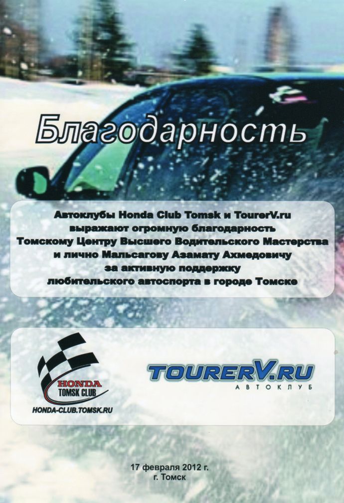 В начале года прошел зимние курсы контраварийной подготовки в Томском ЦВВМ. Что побудило туда пойти? Я думаю, что львиная доля тех, кто решил пойти на подобные курсы, это возникновение у самого критической дорожной ситуации. Так было и в моем случае. В один прекрасный день я не справился с управлением и попал в так называемый ритмический занос. В машине был один, и дорожная ситуация была благоприятна для меня (обошлось без вреда здоровью и повреждения авто), НО тут я понял одну простую вещь - за рулем должен быть водитель, а не прокладка между рулем и сиденьем, иначе можно таких бед натворить... К счастью, оказалось, что в Томске имеется центр контраварийной подготовки. Сказано - сделано. Скажу, что до первой минуты посещения курсов относился ко всему этому о-очень скептически, думал сначала пригляжусь, а после решу. Так вот после первого дня базового курса понял, что опасения были напрасными. А чем дальше, тем больше. За пять дней базового курса мое представление об управлении авто ПОЛНОСТЬЮ ПЕРЕВЕРНУЛОСЬ с ног на голову, а вернее, наоборот стало правильным. Ведь вся теория основывается на элементарных законах физики - все просто доступно и понятно. А самое главное это по силам практически любому, конечно, при определенном трудолюбии. Как с теоретических, так и с практических занятий (автодромная подготовка) попросту не хотелось уходить. Было дикое желание научиться по настоящему грамотно УПРАВЛЯТЬ авто, а не тупо рулить баранку. И я думаю, что пройденное обучение принесло свои плоды. Появилось четкое понимание того, ЧТО же все-таки происходит на дороге и как реагировать на ту или иную ситуацию. Причем к своему удивлению обнаружил, что авто стал управлять уверенно и просто в свое удовольствие. Забавно, что перестали напрягать даже лихачи на дорогах. Просто потому, что стал уверен в своих силах. Многие считают, что имеют огромный стаж вождения и поэтому и так все знают и умеют. Я как минимум с этим не соглашусь. Потом эти же самые люди говорят, что где-то им просто повезло в критической ситуации. На самом деле любой курсант ЦВВМ скажет, что все зависит только от самого водителя, и лишь грамотное управление авто позволит не только выйти победителем из критической ситуации, но и прежде всего позволит не попасть в нее, а это уже профессионализм. Ну и как доказательство того, что обучение не прошло даром скажу, что однажды (уже после обучения) очень выручил один из приемов экстренного торможения. За все это очень благодарен своему инструктору по контраварийной подготовке Азамату Мальсагову!!! Желаю тебе прилежных курсантов, Азамат!!!